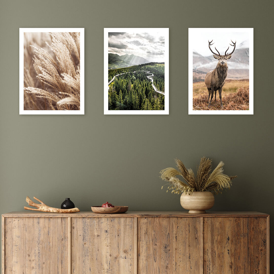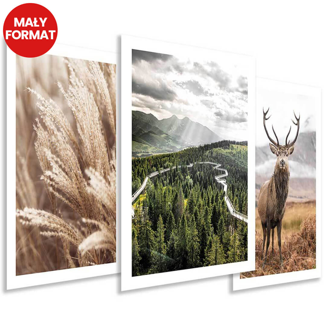 Plakaty - Podróżnicze zdjęcia travel las jeleń 3 szt (bez obramowania) - 30x40 cm